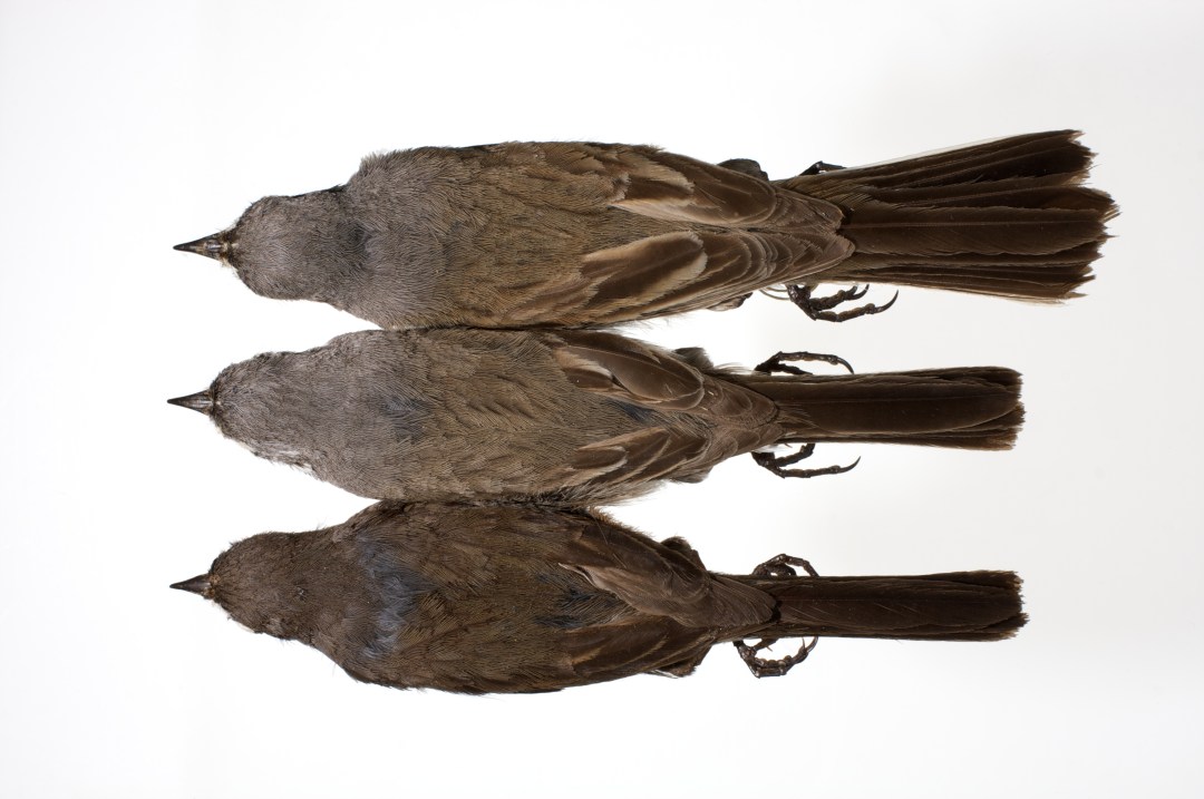 Featured image: Study skins of Sagebrush and Bell’s sparrows in the MVZ, illustrating size and color differences between taxa. Image courtesy of Anand Varma.